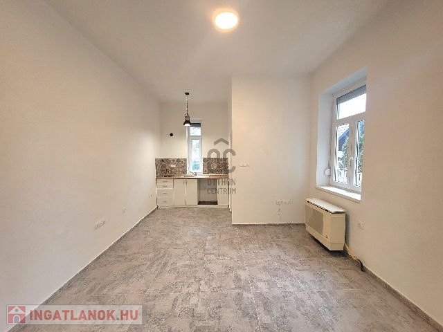 2. - iroda/raktár: Jelenleg egy közlekedőből és egy egy légtérből álló, felújítandó helyiség (ablakai már műanyag nyílászárókra lettek cserélve).